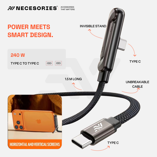 Necesories 240W USB-C to USB-C Fast Charging Cable with Built-in Stand (1.5m)