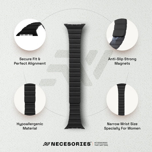 Necesories Womens Slim Leather Link Magnetic Bands Compatible for iWatch Strap
